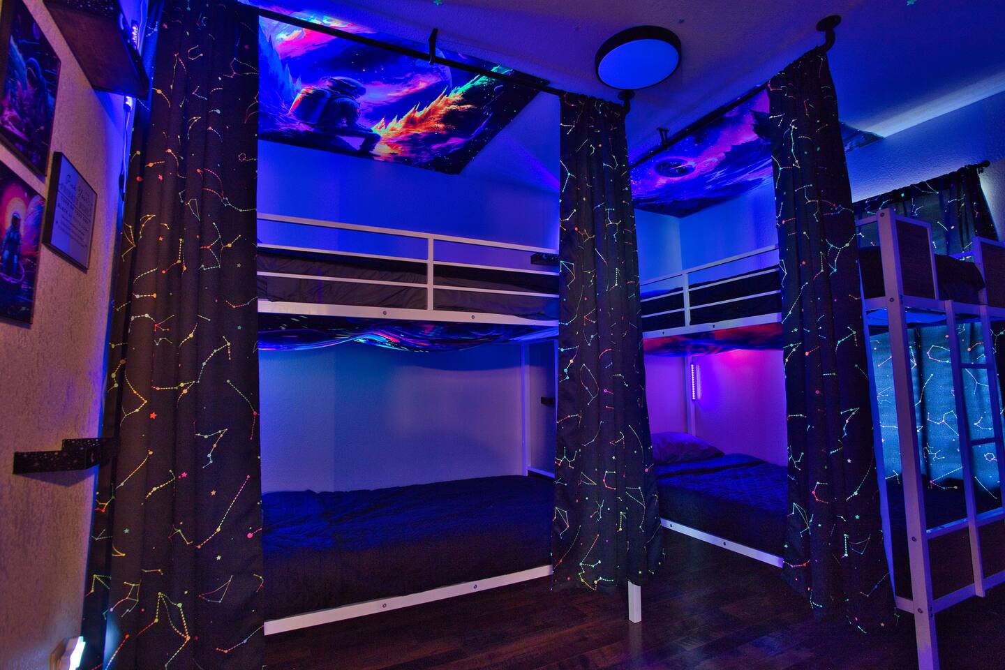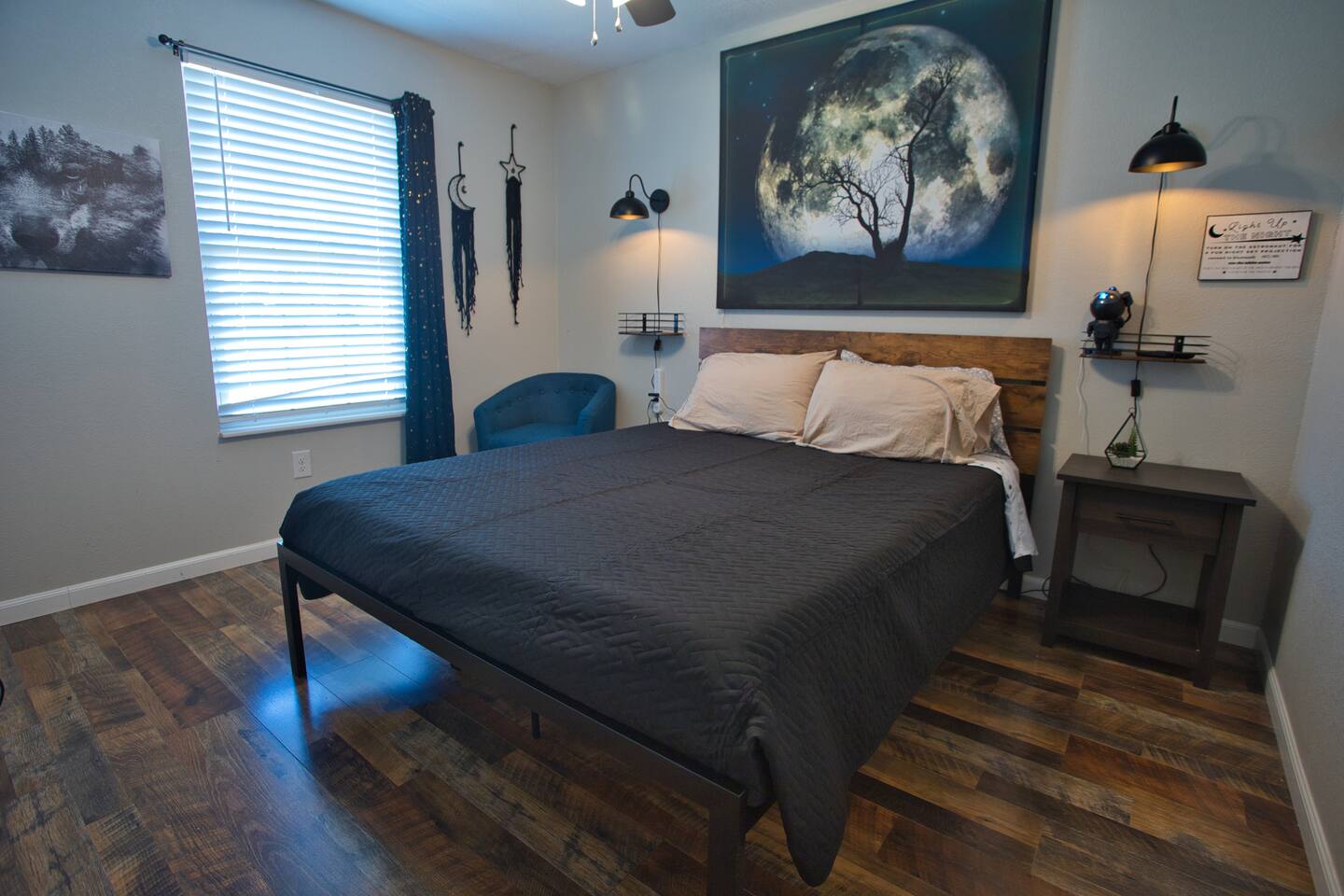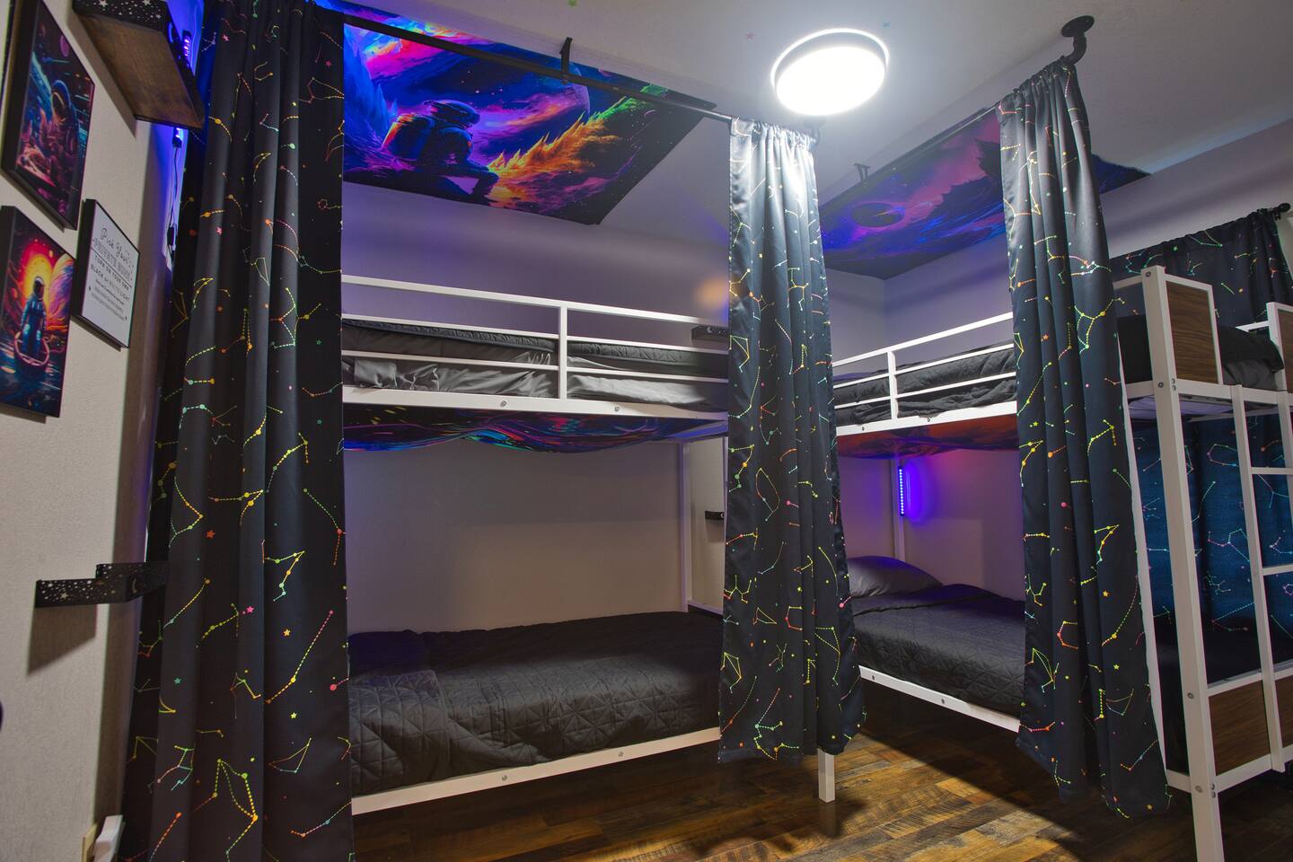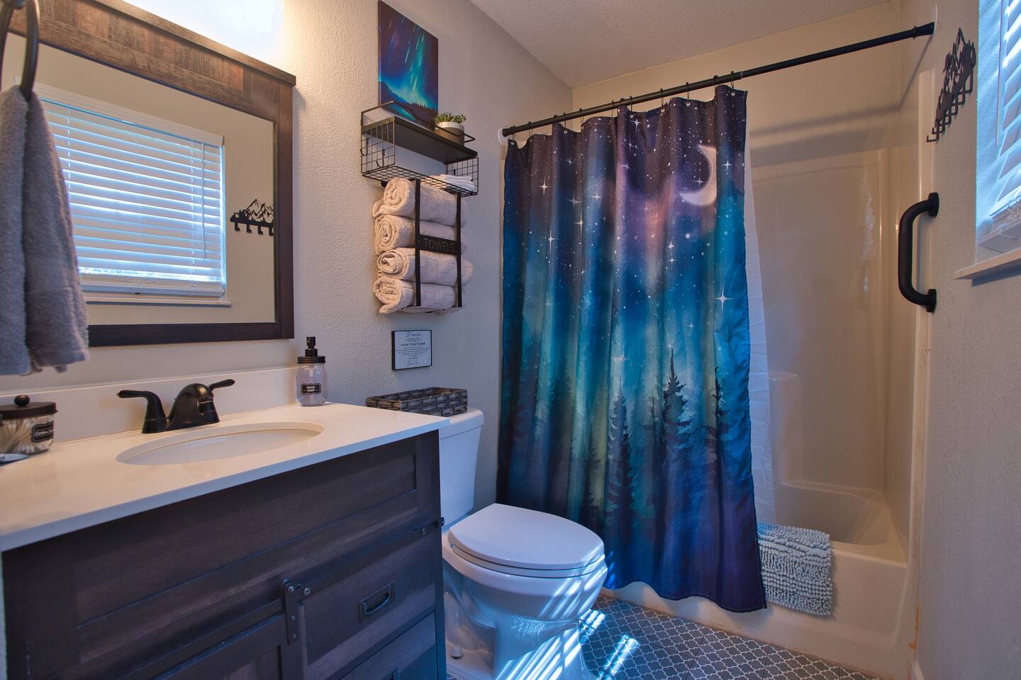 Tucked away in a quiet Sevierville valley, Starscape Cabin is a peaceful single-level 3-bedroom, 2-bath escape perfect for families, adventurers, and stargazers. With no city lights to dim the view, enjoy breathtaking night skies right from your deck or fire pit. Bedrooms: -King suite with starry-night theme, en-suite bath, makeup station, smart TV, and Aurora projector for a magical glow -Queen bedroom with nursery area (pack-n-play, sound machine, monitor, reading chair, astronaut lighting) -Bunk room with neon tapestries, black lights, smart TV, and Nintendo Switch dock -Living room pull-out couch for extra sleeping space Living & Dining: -Fully stocked kitchen with Keurig, drip coffee maker, kids’ dishware, and highchair -Dining table for family meals and game nights -Living room with cozy seating, electric fireplace, smart TV, surround sound, and immersive star projector Outdoor Space: -Covered back deck with grill, star lights, and seating for outdoor dining -Fenced yard with fire pit for s’mores and stargazing -Scenic valley views for a true “away from it all” feeling Nearby Adventures: Douglas Lake – 10 minutes Great Smoky Mountains (Cosby entrance) – 20 minutes Dollywood – 23 minutes Gatlinburg – 35 minutes Pet-Friendly -Bring your furry friends—fenced yard included (must be added to booking) Relax, recharge, and make unforgettable Smoky Mountain memories under the stars.