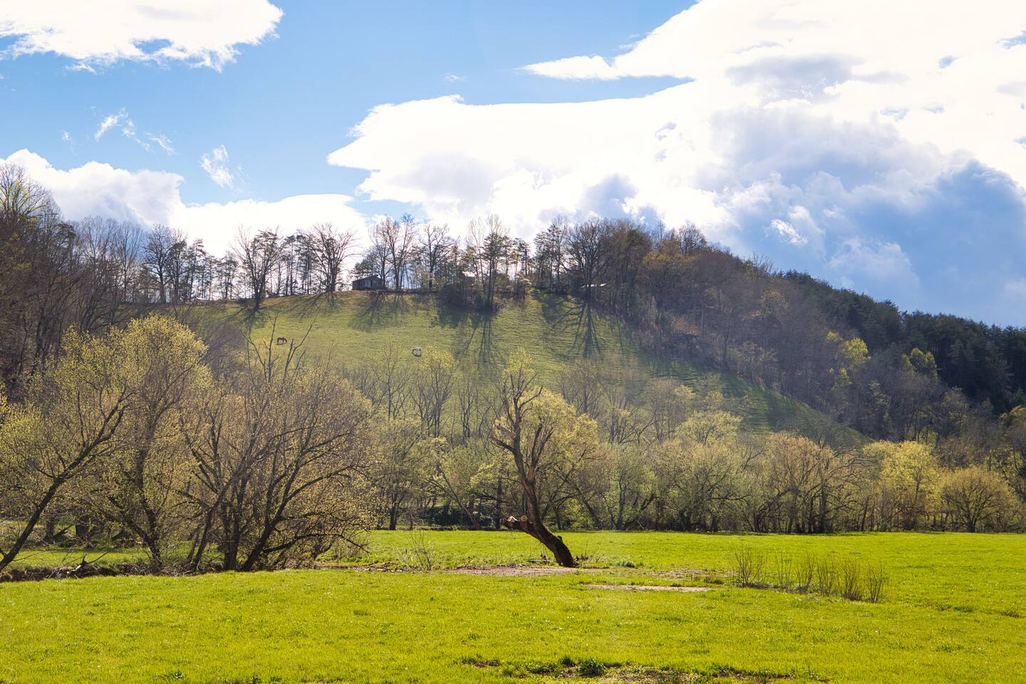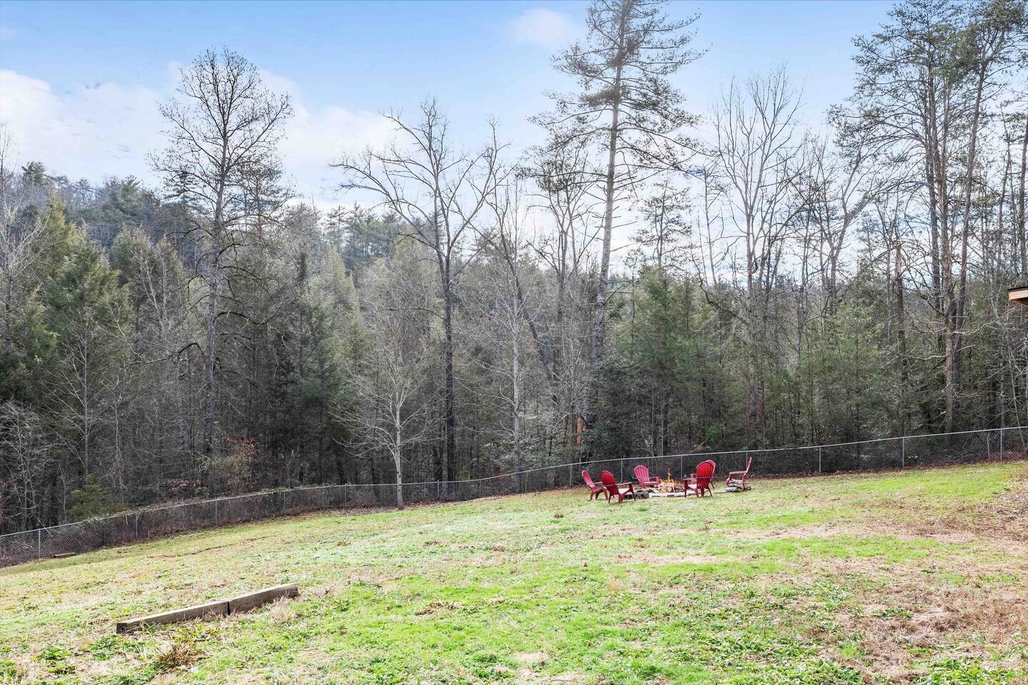 It is quiet and tucked back into the hills of green. There are only a few homes on the cul-de-sac. The long driveway gives easy access to the cabin and makes a great space for car enthusiasts because we have room for trailers or a 5th wheel.