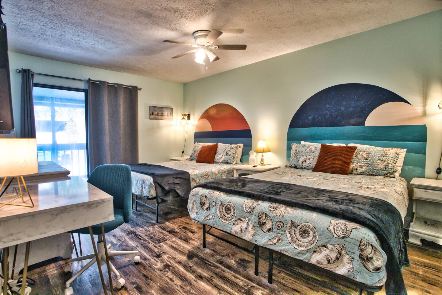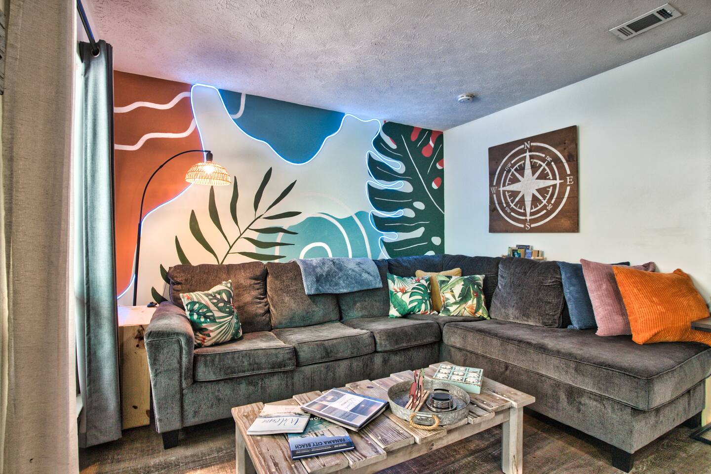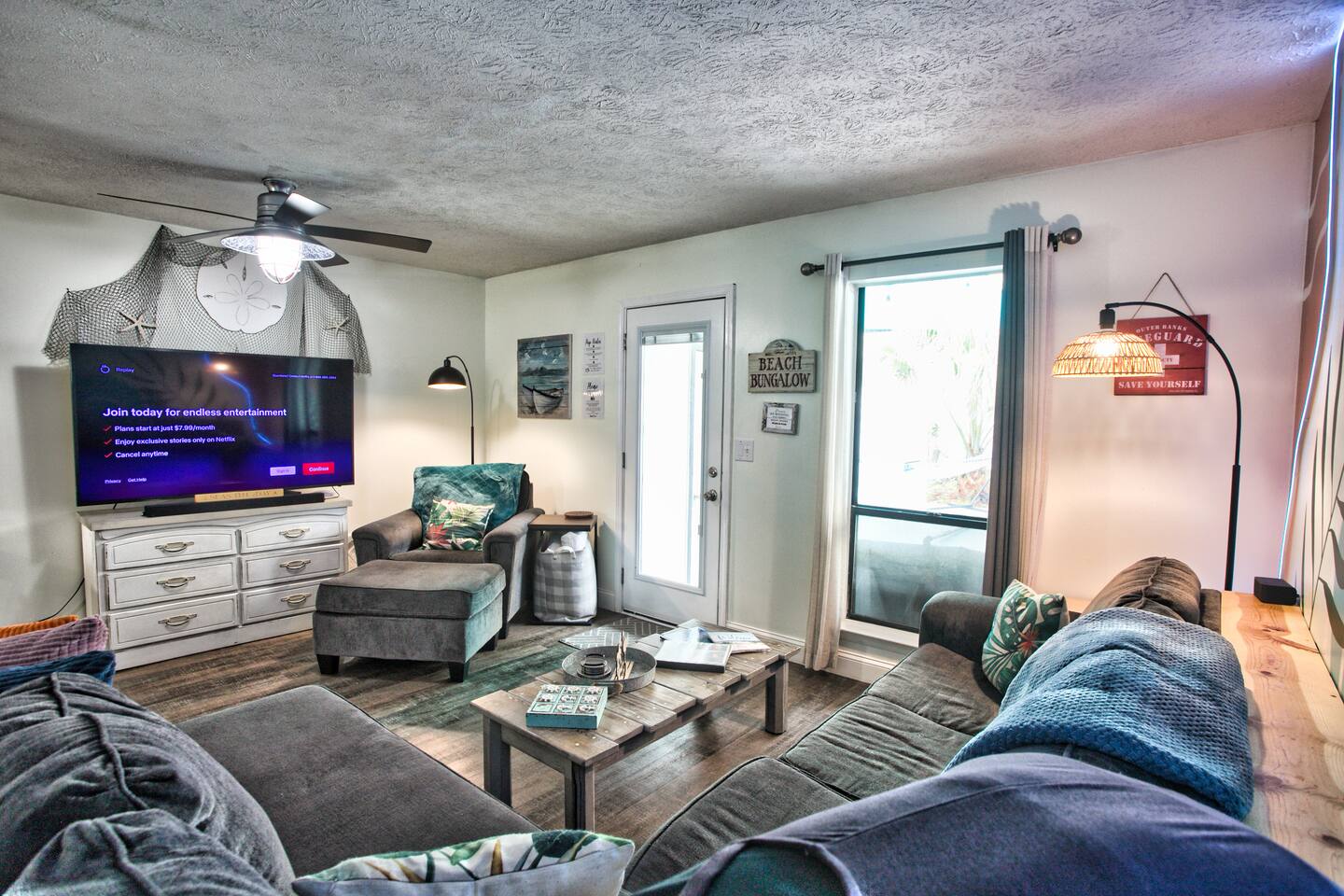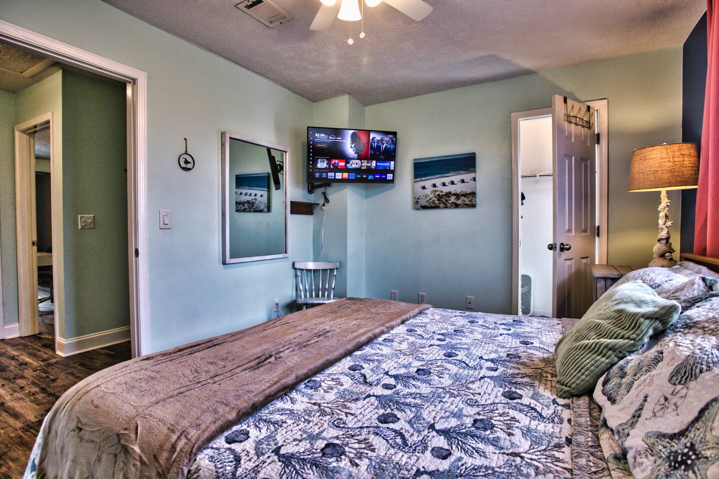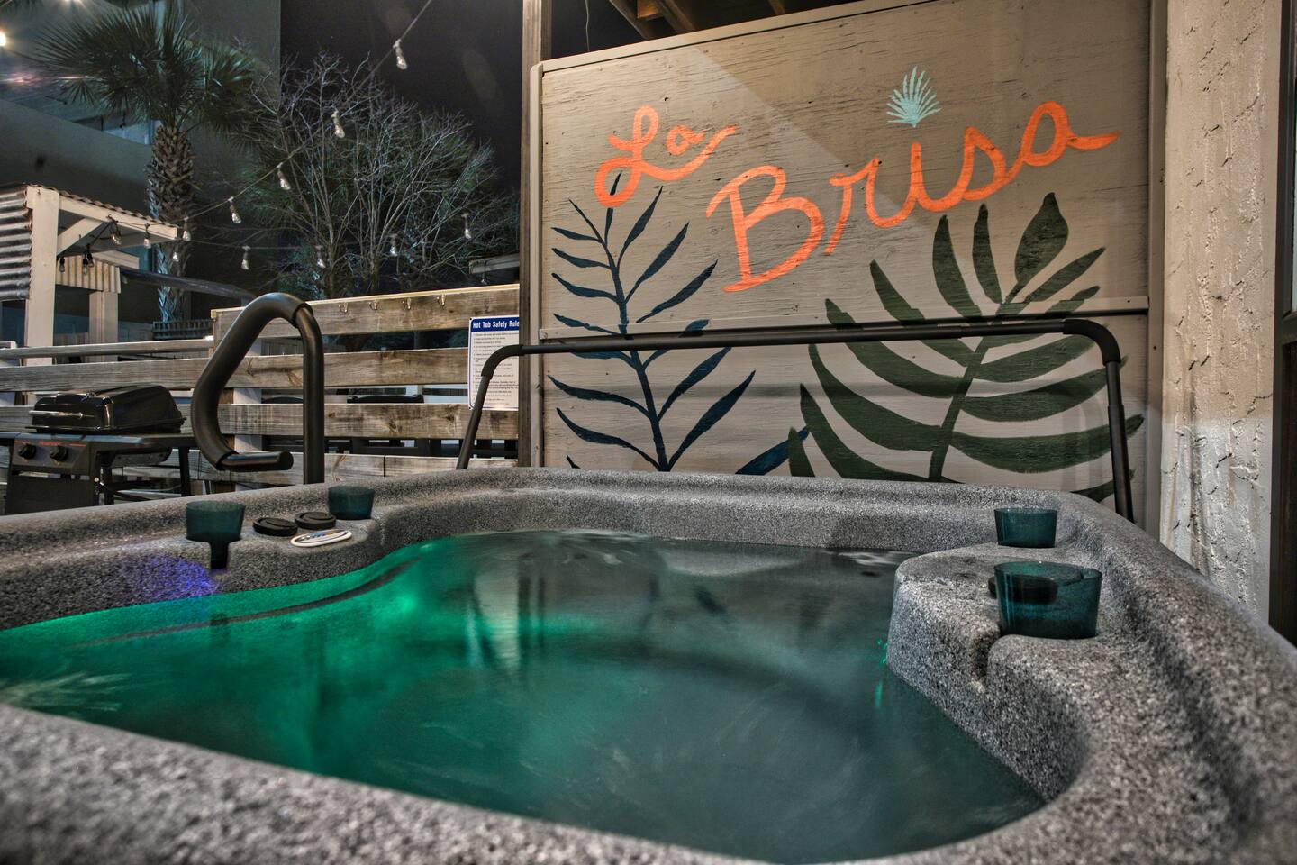 La Brisa: ✔Private Hot Tub ✔4-min walk to beach & restaurants ✔1 king, 2 queens, a pull-out ✔Cozy living room & reading nook ✔Full kitchen ✔1.5 baths ✔Kids' game closet ✔Outdoor shower ✔Beach essentials, cooler, wagon, towels, & games ✔Patio: hammock+fire table+grill ✔Laundry ✔Dedicated workspace ✔Wi-Fi & smart TVs ✔Heat & AC ✔Two parking spots Runaway Island, Hidden Lagoon & Arcade short walk Swampy Jack's Park 1.2 mi Margaritaville 1.4 mi Legacy Golf Club 1.6 mi Pier Park & Dog Beach 2.1 mi
